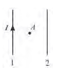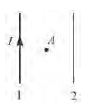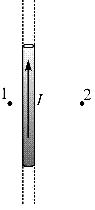 По длинному тонкому прямому проводу течет ток (см. рисунок, точки 1 и 2 лежат в одной плоскости с проводником). Можно утверждать, что