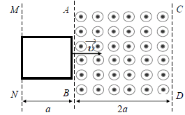 В некоторой области пространства, ограниченной плоскостями AB и CD, создано однородное магнитное поле. Металлическая квадратная рамка, плоскость которой перпендикулярна линиям индукции магнитного поля, движется с постоянной скоростью