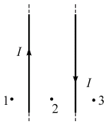 ?) в точках 1 и 3 ?) в точке 1 ?) в точках 2 и 3 ?) в точке 2 Вопрос id:437275 Тема/шкала: B14-Электричество и магнетизм-Направление магнитного поля