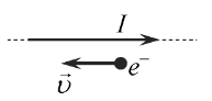 , направленную вдоль прямого длинного проводника с током I (см. рисунок). Куда направлена действующая на электрон сила Лоренца