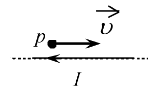 , направленную горизонтально вдоль прямого длинного проводника с током I (см. рисунок). Куда направлена действующая на протон сила Лоренца?