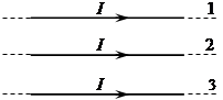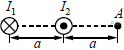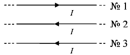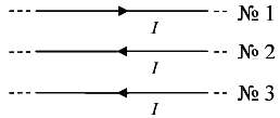 на проводник № 1 (см. рисунок), если все три проводника тонкие, лежат в одной плоскости, параллельны друг другу и расстояния между соседними проводниками одинаково? (I — сила тока.)