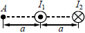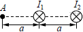 Два параллельных длинных проводника с токами I1 и I2 расположены перпендикулярно плоскости чертежа