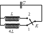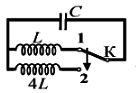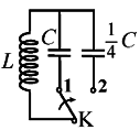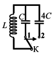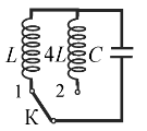 Как изменится период собственных электромагнитных колебаний в контуре (см. рисунок), если ключ К перевести из положения 1 в положение 2?