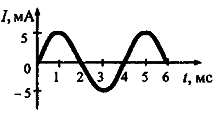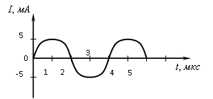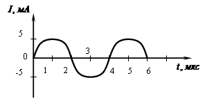 ?) 1 мкс ?) 8 мкс ?) 2 мкс ?) 4 мкс Вопрос id:437634 Тема/шкала: B16-Электромагнитная индукция. Оптика-Колебательный контур На рисунке приведен график гармонических колебаний тока в колебательном контуре.