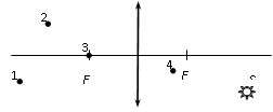 ?) все лучи ?) только 1, 2, 3 ?) только 1 ?) только 1 и 2 Вопрос id:437673 Тема/шкала: B16-Электромагнитная индукция. Оптика-Линзы Какая из точек (1, 2, 3 или 4), показанных на рисунке, является изображением точки S в тонкой собирающей линзе с фокусным расстоянием F?