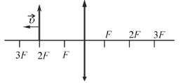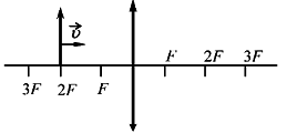 Предмет, расположенный на двойном фокусном расстоянии от тонкой собирающей линзы, передвигают к фокусу линзы (см. рисунок). Его изображение при этом движется от двойного фокуса