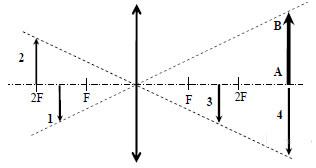 Вопрос id:437723 Тема/шкала: B16-Электромагнитная индукция. Оптика-Линзы Какой из образов 1 − 4 служит изображением предмета AB в тонкой линзе с фокусным расстоянием F?