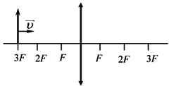 Предмет, расположенный на двойном фокусном расстоянии от тонкой собирающей линзы, передвигают к тройному фокусу (см. рисунок). Его изображение при этом движется