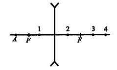 ?) на двойном фокусном расстоянии от линзы ?) между фокусом и двойным фокусом ?) между фокусом и линзой ?) за тройным фокусом Вопрос id:437693 Тема/шкала: B16-Электромагнитная индукция. Оптика-Линзы На рисунке изображены главная оптическая ось линзы