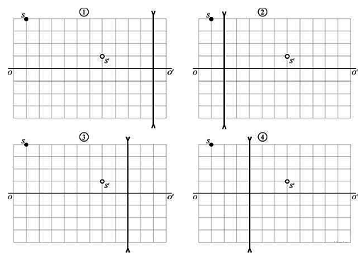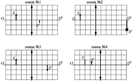?) №2 ?) №1 ?) №3 ?) №4 Вопрос id:437713 Тема/шкала: B16-Электромагнитная индукция. Оптика-Линзы На рисунках представлены предмет S и его изображение S' , полученное с помощью четырёх различных собирающих тонких линз.