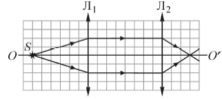 На рисунке изображены две тонкие собирающие линзы Л1 и Л2, имеющие общую главную оптическую ось OO', и показан ход лучей параллельного пучка света через эти линзы.