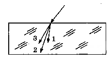 Для видимого света угол преломления световых лучей на некоторой границе раздела двух сред уменьшается с увеличением длины волны излучения. Ход лучей для трех цветов при падении белого света из воздуха на границу раздела показан на рисунке. Цифрам соответствуют цвета