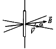 Прямолинейный проводник длиной l в течение времени Δt перемещается со скоростью V в однородном магнитном поле с индукцией B. Векторы V и B образуют друг с другом угол α и перпендикулярны проводнику (см. рисунок).
