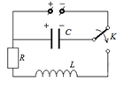Конденсатор колебательного контура подключен к источнику постоянного напряжения. Графики А и Б представляют зависимость от времени t физических величин, характеризующих колебания в контуре после переведения переключателя К в положение 2 в момент