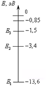 На рисунке показаны энергетические уровни атома водорода. Если атом находится в основном состоянии, то для его перехода в ионизированное состояние необходимо