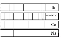 ?) только кальций (Са) ?) только стронций (Sr) ?) стронций и еще какое-то неизвестное вещество ?) кальций и еще какое-то неизвестное вещество Вопрос id:437885 Тема/шкала: B19-СТО. Физика атома, физика атомного ядра-Атомные спектры, энергетические уровни На рисунке приведены фрагмент спектра поглощения неизвестного разреженного атомарного газа (в середине), спектры поглощения атомов водорода (вверху) и гелия (внизу).