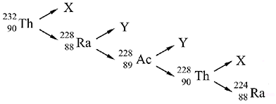 ?) ?) ?) ?) только Вопрос id:438002 Тема/шкала: B20-Радиоактивность. Ядерные реакции-Ядерное излучение, радиоактивный распад На рисунке показана схема цепочки радиоактивных превращений, в результате которой изотоп тория