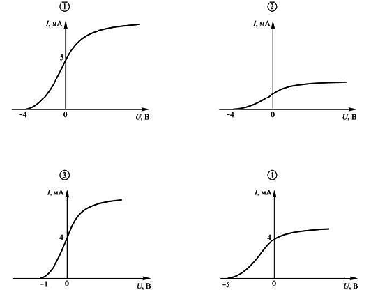 ?) 3 эВ ?) 2 эВ ?) 1 эВ ?) 4 эВ Вопрос id:438098 Тема/шкала: B21-Фотоны. Закон радиоактивного распада-Внешний фотоэффект, СТО В опыте по изучению фотоэффекта одну из пластин плоского конденсатора облучают светом с энергией фотона 5 эВ. Напряжение между пластинами изменяют с помощью реостата, силу фототока в цепи измеряют амперметром. Работа выхода электрона с поверхности металла, из которого сделаны пластины конденсатора, равна 4 эВ. На каком рисунке правильно изображен график зависимости фототока