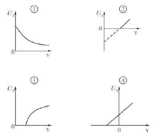 ?) 3 ?) 4 ?) 1 ?) 2 Вопрос id:438102 Тема/шкала: B21-Фотоны. Закон радиоактивного распада-Внешний фотоэффект, СТО При экспериментальном изучении фотоэффекта получена зависимость запирающего напряжения