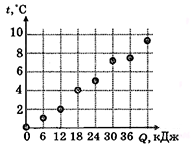С использованием нагревателя известной мощности исследовалась зависимость температуры 1 кг вещества от количества теплоты, полученного от нагревателя. Результаты измерений указаны на рисунке точками. Чему примерно равна удельная теплоёмкость данного вещества?