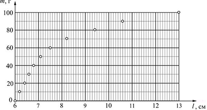 ?) после 3 с шарик двигался с постоянной скоростью ?) первые 3 с шарик двигался с постоянной скоростью ?) шарик все время двигался с постоянным ускорением ?) ускорение шарика увеличивалось в течение всего времени движения Вопрос id:438247 Тема/шкала: B23-Механика — квантовая физика (методы научного познания)-Анализ графиков На графике представлены результаты измерения длины пружины при различных значениях массы грузов, лежащих в чашке пружинных весов. С учетом погрешностей измерений (