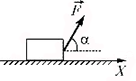 Брусок массой m = 2 кг движется поступательно по горизонтальной плоскости под действием постоянной силы, направленной под углом α = 30° к горизонту (см. рисунок). Модуль этой силы F = 12 Н. Модуль силы трения, действующей на брусок, Fтр = 2,8 Н. Чему равен коэффициент трения между бруском и плоскостью?