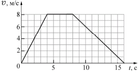Вопрос id:438513 Тема/шкала: B25-Механика. Молекулярная физика (расчетная задача)-Динамика К лёгкому нерастяжимому тросу прикреплён груз массой 50 кг. Груз поднимают на этом тросе вертикально вверх. Используя график зависимости модуля скорости v груза от времени t, определите модуль силы натяжения троса во время последних 8 секунд движения. Ответ приведите в Ньютонах.