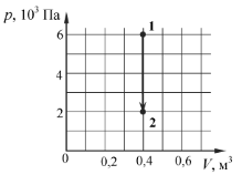 Во время опыта абсолютная температура воздуха в сосуде понизилась в 2 раза, и он перешёл из состояния 1 в состояние 2 (см. рисунок). Кран у сосуда был закрыт неплотно, и сквозь него мог просачиваться воздух. Рассчитайте отношение
