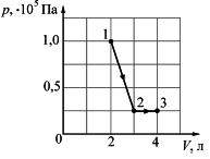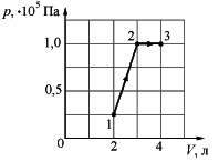 Чему равна работа, совершаемая идеальным одноатомным газом при реализации процесса 1–2–3 (см. рисунок)? Ответ укажите в джоулях с точностью до десятых.