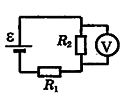 В схеме, изображенной на рисунке, идеальный вольтметр показывает напряжение 3 В. Внутреннее сопротивление источника тока пренебрежимо мало, а сопротивления резисторов