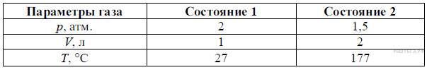 ?) уменьшить приблизительно в 2 раза ?) уменьшить приблизительно в 20 раз ?) увеличить приблизительно в 2 раза ?) увеличить приблизительно в 20 раз Вопрос id:438781 Тема/шкала: B25-Механика. Молекулярная физика (расчётная задача)-Термодинамика и молекулярная физика Идеальный газ, находящийся в сосуде, переводят из состояния 1 в состояние 2. В таблице указаны значения давления р, объёма V и температуры Т газа в этих состояниях.