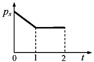 На рисунке приведён график зависимости проекции импульса тела на ось Ох, движущегося по прямой, от времени. Как двигалось тело в интервалах времени 0–1 и 1–2?