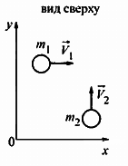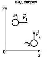 По гладкой горизонтальной плоскости XOY движутся два тела массами m1 и m2 со скоростями V1 и V2, соответственно (см. рисунок). В результате соударения тела слипаются и движутся как единое целое. Проекция импульса этой системы тел на ось OY после соударения будет