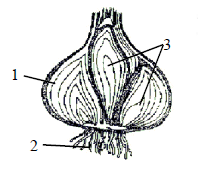 Какой видоизмененный побег представлен на рисунке? Назовите элементы строения, обозначенные на рисунке цифрами 1, 2, 3, и функции, которые они выполняют.