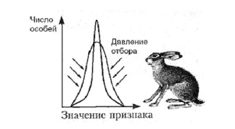 Пользуясь рисунком, определите, какую форму отбора он иллюстрирует. Ответ обоснуйте. Изменится ли размер ушей у зайцев в процессе эволюции под действием этой формы естественного отбора, и при каких условиях жизни этот отбор будет проявляться?