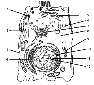 Вопрос id:445453 Тема/шкала: 35.Анализ текстовой и графической информации-Работа с рисунком,35.Анализ текстовой и графической информации Запишите названия частей животной клетки, указанных на схеме. В ответе укажите номер части и её название, схему клетки перерисовывать не нужно.