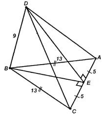 Известно, что BD = 9 см, АС = 10 см, ВС = ВА = 13 см. Расстояние от точки D до прямой АС равно ___ см Вопрос id:502294 Прямая BD перпендикулярна к плоскости треугольника ABC.