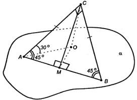 Вопрос id:502828 Гипотенуза прямоугольного равнобедренного треугольника лежит в плоскости α, а катет наклонен к этой плоскости под углом 30°.