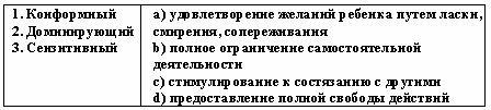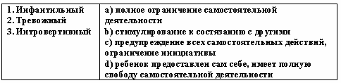 Вопрос id:517905 Установите соответствие стилей семейного воспитания личности формированию определенного социально-психологического типа личности как результата семейного воспитания (по В.М. Миниярову)