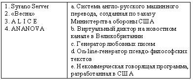 Список вопросов базы знанийАвтоматическая обработка информации (курс 1)Вопрос id:528513 Процесс вербализации определенного содержания по законам определенного жанра, выполняемый на компьютере, называется ?) интеллектуальной обработкой данных ?) автоматическим реферированием ?) автоматическим порождением текста ?) автоматическим индексированием Вопрос id:528514 Установите соответствия