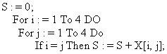 переменные S и K примут значения ?) S=6, K=5 ?) S=6, K=3 ?) S=-2, K=3 ?) S=9, K=5 Вопрос id:558534 Имеется массив целых чисел, размерностью (4х4): Var А: array [1..4,1..4] of integer; Фрагмент программы вычисляет
