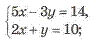 Укажите уравнение относительно х, получающееся в результате применения метода подстановки ?) 5(10 – 2х) – 3(10 – 2х) = 14 ?) 5х – 30 + 6х = 14 ?) 5х – 3(10 + 2х) = 14 ?) 5х – 30 – 6х = 14 Вопрос id:595391 Дана система уравнений: