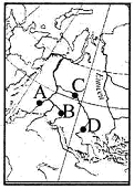 ?) D ?) B ?) C ?) A Вопрос id:606583 На карте России в пределах главной полосы расселения расположен город: