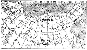 ?) Норильск ?) Якутск ?) Иркутск ?) Магадан Вопрос id:606584 На политико-административной карте России Эвенкийский автономный округ обозначен буквой