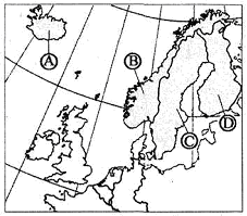 ?) C ?) D ?) A ?) B Вопрос id:606585 На политической карте зарубежной Европы государство Финляндия обозначено буквой:
