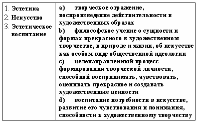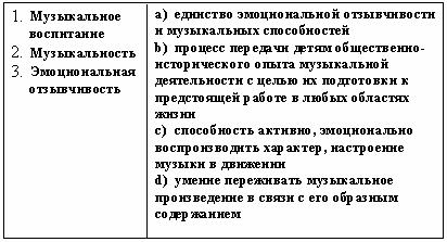 Список вопросов базы знанийТеории и технологии дошкольного образованияВопрос id:615652 Приобретение детьми умений передавать впечатления о предметах и явлениях с помощью выразительных образов является основной задачей воспитания и обучения в процессе ___ деятельности ?) музыкальной ?) изобразительной ?) художественно-речевой ?) театрализованной Вопрос id:615653 Процесс воспроизведения мелодии голосом и переживания содержания песни называется ?) стихотворением ?) пением ?) отзывчивостью ?) фонированием Вопрос id:615654 Процесс передачи детям общественно-исторического опыта музыкальной деятельности с целью их подготовки к предстоящей работе в любых областях жизни называется музыкальным ?) воспитанием ?) научением ?) приучением ?) развитием Вопрос id:615655 Развитие у детей интереса к рисованию, лепке, направленное на выявление способности замечать красивое в окружающем (картинках, игрушках), осуществляется на занятиях в ___ группе ?) младшей ?) старшей ?) подготовительной к школе ?) средней Вопрос id:615656 Развитие эстетического восприятия, оценки, первоначальных проявлений вкуса осуществляется при помощи метода ?) проблемных ситуаций ?) упражнения ?) приучения ?) убеждения Вопрос id:615657 Раскрытие личности ребенка, его индивидуальности, развитие его творческого потенциала, основанного на самовыражении ребенка, его саморазвитии, на сотрудничестве и сотворчестве, является целью эстетического ?) воспитания ?) восприятия ?) научения ?) мышления Вопрос id:615658 Результатом процесса музыкального воспитания является музыкальное ?) обучение ?) развитие ?) упражнение ?) приучение Вопрос id:615659 Рисунок на бумаге или картоне карандашом, пером, углем или с помощью специальных приспособлений и машин называется ?) скульптурой ?) графикой ?) живописью ?) лепкой Вопрос id:615660 С правилами поведения в театре знакомят детей в ___ группе ?) подготовительной к школе ?) старшей ?) средней ?) младшей Вопрос id:615661 Самостоятельно могут придумывать музыкально-дидактические игры, проводить их, используя в качестве дидактического материала детские музыкальные игрушки и инструменты, дети ___ группы ?) подготовительной ?) средней ?) младшей ?) старшей Вопрос id:615662 Свойство души, состоящее в преобладании духовных, нравственных и интеллектуальных ценностей над материальными, называется ?) характером ?) темпераментом ?) принципиальностью ?) духовностью Вопрос id:615663 Система гармоничных цветовых соотношений, отражающих красочное многообразие окружающего мира, называется ?) композицией ?) мозаикой ?) аппликацией ?) колоритом Вопрос id:615664 Слова с противоположным значением ?) синонимы ?) антонимы ?) метафоры ?) омонимы Вопрос id:615665 Слова, различные по звучанию, но тождественные или близкие по смыслу ?) омонимы ?) синонимы ?) антонимы ?) метафоры Вопрос id:615666 Специально придуманная фраза с труднопроизносимым подбором звуков, быстро проговариваемая прибаутка называется ?) потешкой ?) пестушкой ?) загадкой ?) скороговоркой Вопрос id:615667 Способ передачи информации и влияния на формирование личности называется ?) принципом ?) формулой ?) стратегией ?) методом Вопрос id:615668 Способ построения художественного произведения, принцип связи однотипных и разнородных компонентов и частей, согласованных между собой и целым, называется ?) колоритом ?) вырезанием ?) наклеиванием ?) композицией Вопрос id:615669 Способность активно, эмоци