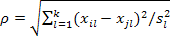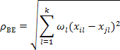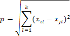 , где ωl - «вес» компоненты вектора наблюдений х, пропорциональный степени важности признака в задаче классификации, 0 ≤ ωl ≤ 1, l=1,2,..., k. – это формула для определения