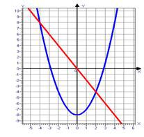 ?) -8 ?) -4 ?) -1 ?) 2 Вопрос id:636900 Определите по графику корни уравнения х2-8=-2х: