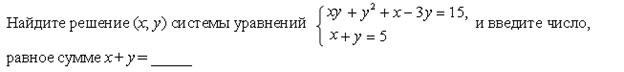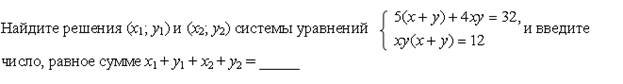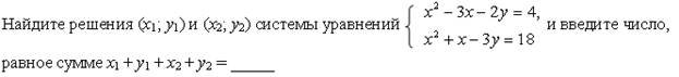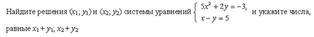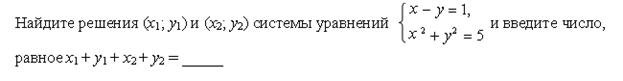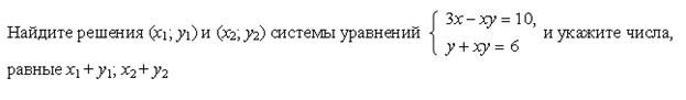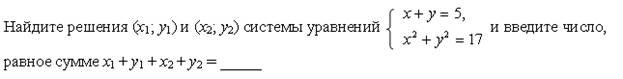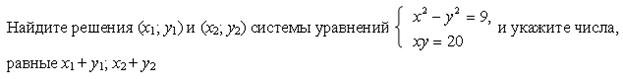 Список вопросов базы знанийАлгебра (9 класс)Вопрос id:640030 Двое учеников вымыли крышки столов в классе за 6 ч. Если бы сначала первый сделал половину этой работы, а затем второй остальную часть, то вся работа была бы выполнена за 12,5 ч. За какое время мог выполнить работу каждый в отдельности? ?) 10 и 15 ч ?) 14 и 16 ч ?) 12 и 14 ч ?) 9 и 12 ч Вопрос id:640031 Двузначное число в 6 раз больше суммы его цифр. Если из этого числа вычесть произведение его цифр, то получится 34. Найдите исходное число Вопрос id:640032 Диагональ прямоугольника равна 10 см, а его периметр равен 28 см. Найдите стороны прямоугольника ?) 4 и 10 см ?) 6 и 8 см ?) 3 и 11 см ?) 5 и 9 см Вопрос id:640033 Если двузначное число разделить на сумму его цифр, то в частном получится 7 и в остатке 6. Если это же двузначное число разделить на произведение его цифр, то в частном получится 3, а в остатке число, равное сумме цифр исходного числа. Найдите исходное число Вопрос id:640034 Если задуманное двузначное число умножить на цифру его единиц, то получится 376, а если из задуманного числа вычесть двузначное число, записанное теми же цифрами, но в обратном порядке, то получится 45. Какое число задумано? Вопрос id:640035 Задуманы два натуральных числа, произведение которых равно 720. Если первое число разделить на второе, то в частном получится 3 и в остатке 3. Какие числа задуманы? ?) 18 и 40 ?) 48 и 15 ?) 72 и 10 ?) 36 и 20 Вопрос id:640036 Из пункта А в одном и том же направлении вышли два лыжника, причем второй стартовал на 6 мин позже первого и догнал первого в 3 км от старта. Дойдя до отметки 5 км, второй лыжник повернул обратно и встретил первого в 4,6 км от старта. Найдите скорости лыжников ?) 10 и 12 км/ч ?) 12 и 16 км/ч ?) 10 и 15 км/ч ?) 12 и 15 км/ч Вопрос id:640037 Какое двузначное число в 4 раза больше суммы своих цифр и в 3 раза больше произведения цифр? Вопрос id:640038 Курьер ехал на велосипеде до станции по грунтовой дороге 10 км с некоторой скоростью, а возвращался обратно лесной дорогой протяженностью 5 км с другой скоростью, затратив на весь путь 1 ч 5 мин. Найдите скорость велосипедиста по грунтовой и по лесной дороге, если на обратный путь он затратил на 15 мин меньше, чем на дорогу до станции ?) 12 км/ч и 16 км/ч ?) 15 км/ч и 12 км/ч ?) 16 км/ч и 10 км/ч ?) 12 км/ч и 10 км/ч Вопрос id:640039 Найдите координаты точек пересечения окружности х2 + у2 = 36 и параболы у = х2 + 6 ?) (0; 6) ?) точек пересечения нет ?) (0; 6), (0; 0) ?) (0; 0), ( Вопрос id:640040 Найдите расстояние между точками А(1; 1) и В(4; 5) на координатной плоскости Вопрос id:640041 Оператор ЭВМ, работая с учеником, обрабатывает задачу за 2 ч 24 мин. Если оператор будет работать 2 ч, а ученик – 1 ч, то будет выполнено ?) 2 и 5 ч ?) 5 и 7 ч ?) 4 и 6 ч ?) 3 и 8 ч Вопрос id:640042 По окружности длиной 60 м равномерно в одном направлении движутся две точки. Одна из них совершает полный оборот на 5 с быстрее другой. При этом совпадение точек происходит каждый раз через 1 мин. Определите скорости движения точек ?) 2 и 3 м/с ?) 3 и 4 м/с ?) 2 и 4 м/с ?) 3 и 5 м/с Вопрос id:640043 Постройте график уравнения 2у – х2 = 0 ?) ![]() ?) ![]() ?) ![]() ?) ![]() Вопрос id:640044 Постройте график уравнения ?) ![]() ?) ![]() ?) ![]() ?) ![]() Вопрос id:640045 При смешивании 40%-го раствора соли с 10%-ным раствором получили 800 г раствора с концентрацией соли 21,25%. Сколько граммов каждого раствора было для этого взято? ?) 350 г и 450 г ?) 200 г и 600 г ?) 250 г и 550 г ?) 300 г и 500 г Вопрос id:640046 Произведение цифр натурального двузначного числа равно 12, а сумма квадратов цифр этого числа равна 40. Найдите это число, а если и